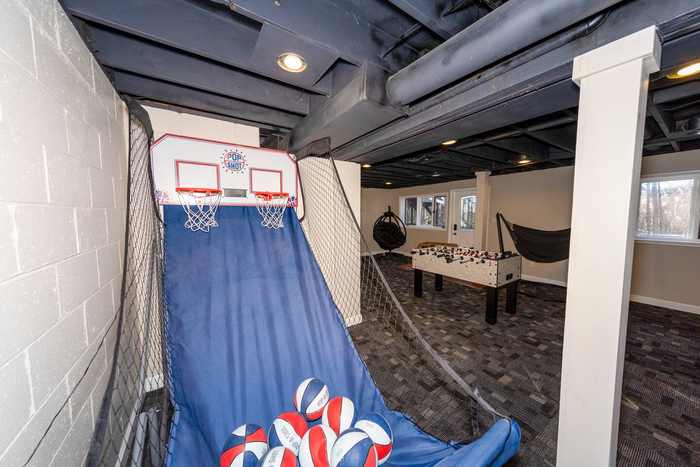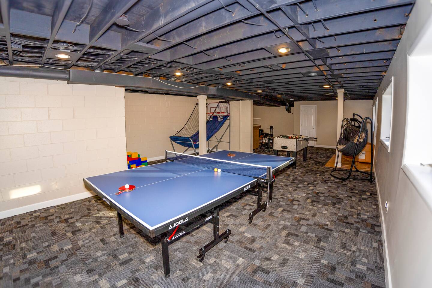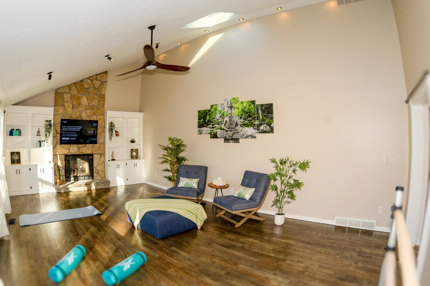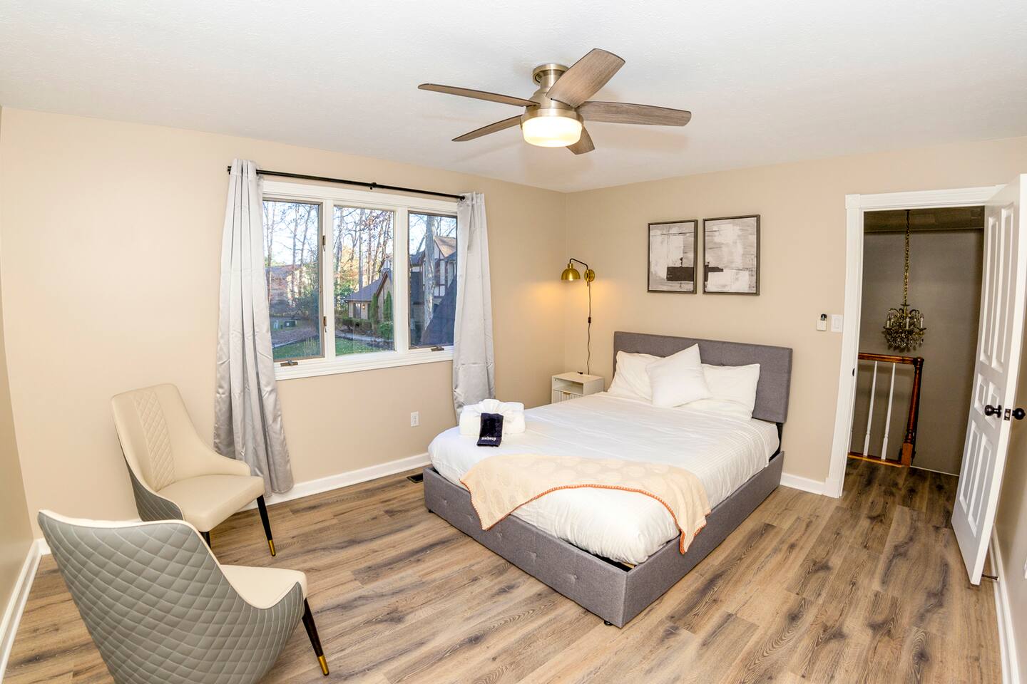 Explore the beauty of nature and rejuvenate your mind and body in our private yoga studio with large windows and a ballet barre. Gather in the spacious living areas, enjoy friendly competition in the game room, cook in the fully equipped kitchen, or unwind on the patio overlooking serene surroundings. With luxurious amenities and thoughtful design, this retreat is restorative, transformative, and unforgettable. Accommodations: - 6 Bedrooms with 7 Beds (2 King Beds, 3 Queen Beds and 2 Twin beds) - Upper Level: 5 bedrooms - Lower Level: 1 Bedroom - 3 Full Bathrooms and 2 Half Bathrooms - Upper Level: 2 Full Baths - Main Level: 1 Half Bath - Lower Level : 1 Full Bath and 1 Half Bath Additional spaces include: - A dedicated office room with a monitor, printer, and USB-C setup for laptops. - A spacious living room that opens to a patio. - A 500 sqft yoga studio with a ballet barre for yoga, meditation, or group activities. - A versatile game room Includes Ping Pong, Foosball, Basketball, Kids Lego, and more. Features: - Prime location near the 270 & 161 Highway Junction, with easy access to shopping, dining, and entertainment. - Spacious Living Room: Opens to a large patio, perfect for gathering and relaxing. - Yoga Studio: 500 sqft serene space with skylight, large windows, ridge views, and a ballet barre—ideal for yoga, meditation, or group activities. - Dedicated Office Room: Fully equipped with a monitor, printer, and USB-C port setup for your laptop, ensuring a productive and comfortable workspace. - Fully Equipped Kitchen: Stocked with all necessary utensils to prepare and enjoy meals with your group. - Game room: Includes Ping Pong, Foosball, Basketball, Kids Lego, and more for endless fun. - Parking: 2-car garage plus a large driveway with space for multiple vehicles. Outdoor Space: - Enjoy 1 acre of private space on a scenic ridge with tranquil surroundings and beautiful views. Location Highlights: - Easton Town Center: 9-minute drive for shopping, dining, and entertainment. - Blendon Woods Metro Park: 5-minute drive for nature trails and picnics. - Hoover Dam Nature Trail: 8-minute drive for hiking and exploration. - John Glenn Columbus International Airport: 13-minute drive for travel convenience. - Ohio State University: 20-minute drive for events and campus visits.
