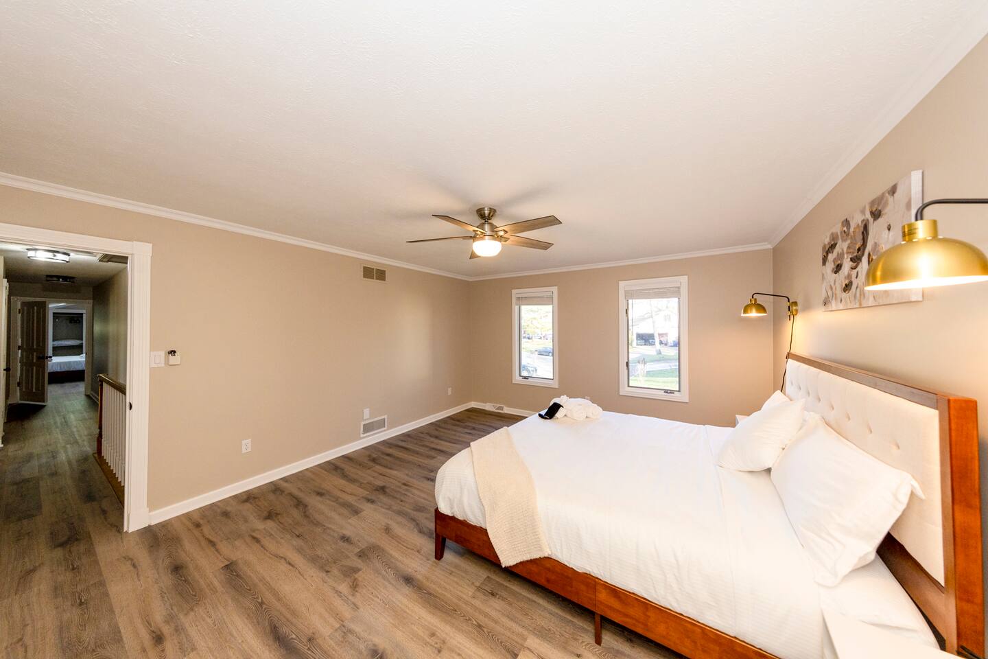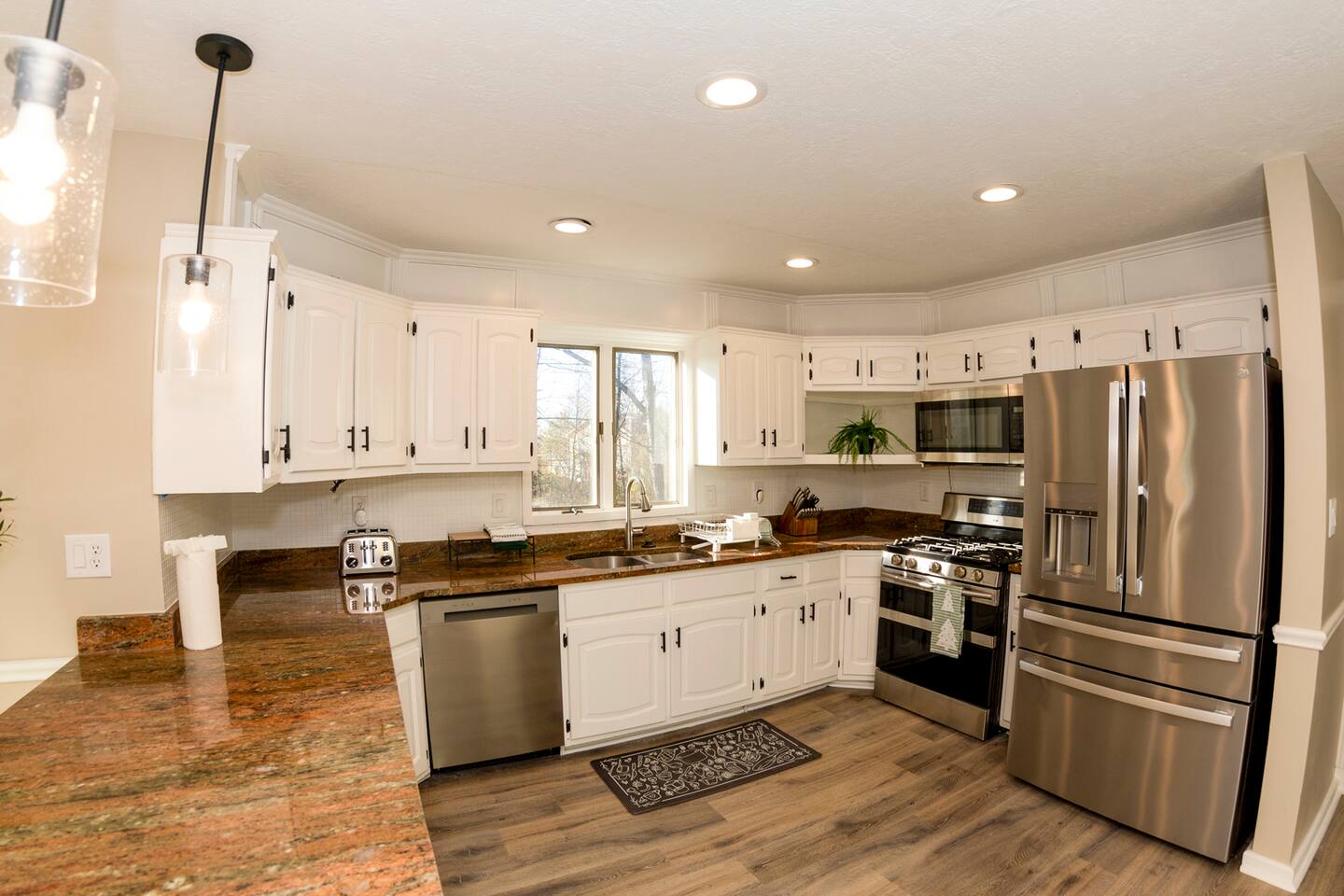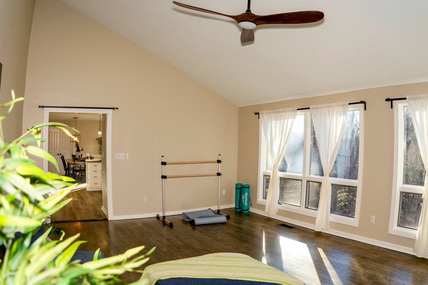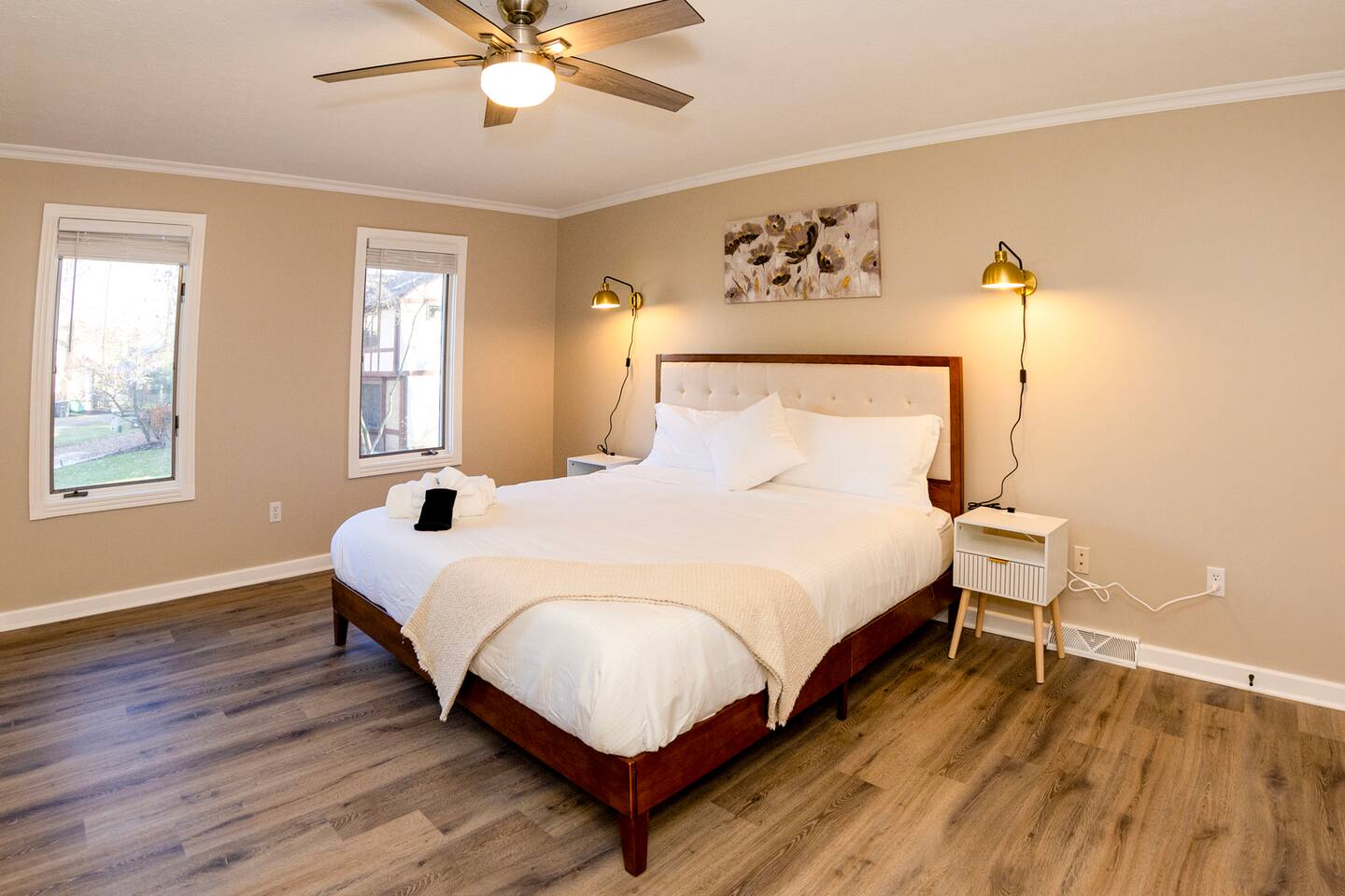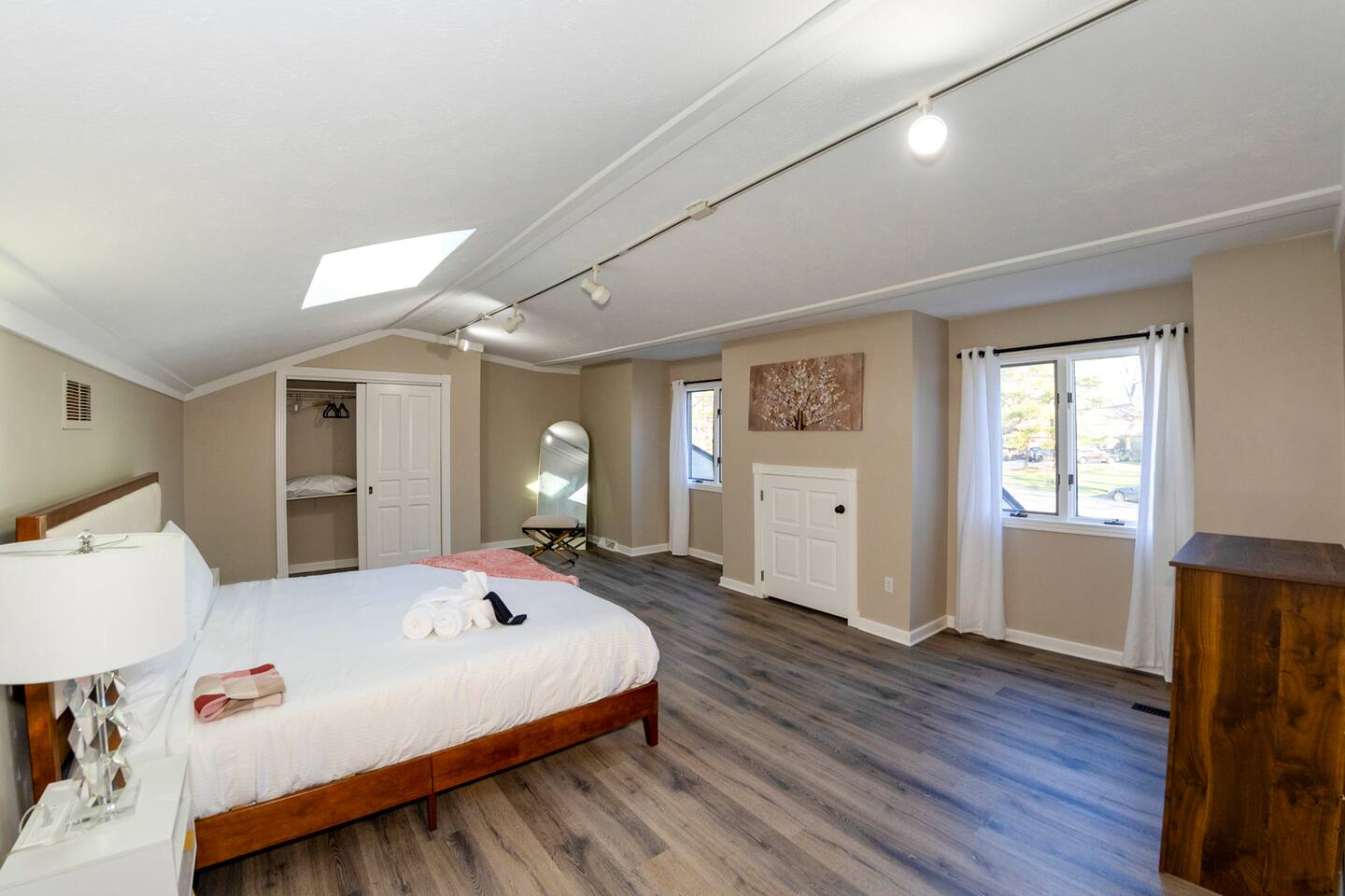 Explore the beauty of nature and rejuvenate your mind and body in our private yoga studio with large windows and a ballet barre. Gather in the spacious living areas, enjoy friendly competition in the game room, cook in the fully equipped kitchen, or unwind on the patio overlooking serene surroundings. With luxurious amenities and thoughtful design, this retreat is restorative, transformative, and unforgettable. Accommodations: - 6 Bedrooms with 7 Beds (2 King Beds, 3 Queen Beds and 2 Twin beds) - Upper Level: 5 bedrooms - Lower Level: 1 Bedroom - 3 Full Bathrooms and 2 Half Bathrooms - Upper Level: 2 Full Baths - Main Level: 1 Half Bath - Lower Level : 1 Full Bath and 1 Half Bath Additional spaces include: - A dedicated office room with a monitor, printer, and USB-C setup for laptops. - A spacious living room that opens to a patio. - A 500 sqft yoga studio with a ballet barre for yoga, meditation, or group activities. - A versatile game room Includes Ping Pong, Foosball, Basketball, Kids Lego, and more. Features: - Prime location near the 270 & 161 Highway Junction, with easy access to shopping, dining, and entertainment. - Spacious Living Room: Opens to a large patio, perfect for gathering and relaxing. - Yoga Studio: 500 sqft serene space with skylight, large windows, ridge views, and a ballet barre—ideal for yoga, meditation, or group activities. - Dedicated Office Room: Fully equipped with a monitor, printer, and USB-C port setup for your laptop, ensuring a productive and comfortable workspace. - Fully Equipped Kitchen: Stocked with all necessary utensils to prepare and enjoy meals with your group. - Game room: Includes Ping Pong, Foosball, Basketball, Kids Lego, and more for endless fun. - Parking: 2-car garage plus a large driveway with space for multiple vehicles. Outdoor Space: - Enjoy 1 acre of private space on a scenic ridge with tranquil surroundings and beautiful views. Location Highlights: - Easton Town Center: 9-minute drive for shopping, dining, and entertainment. - Blendon Woods Metro Park: 5-minute drive for nature trails and picnics. - Hoover Dam Nature Trail: 8-minute drive for hiking and exploration. - John Glenn Columbus International Airport: 13-minute drive for travel convenience. - Ohio State University: 20-minute drive for events and campus visits.