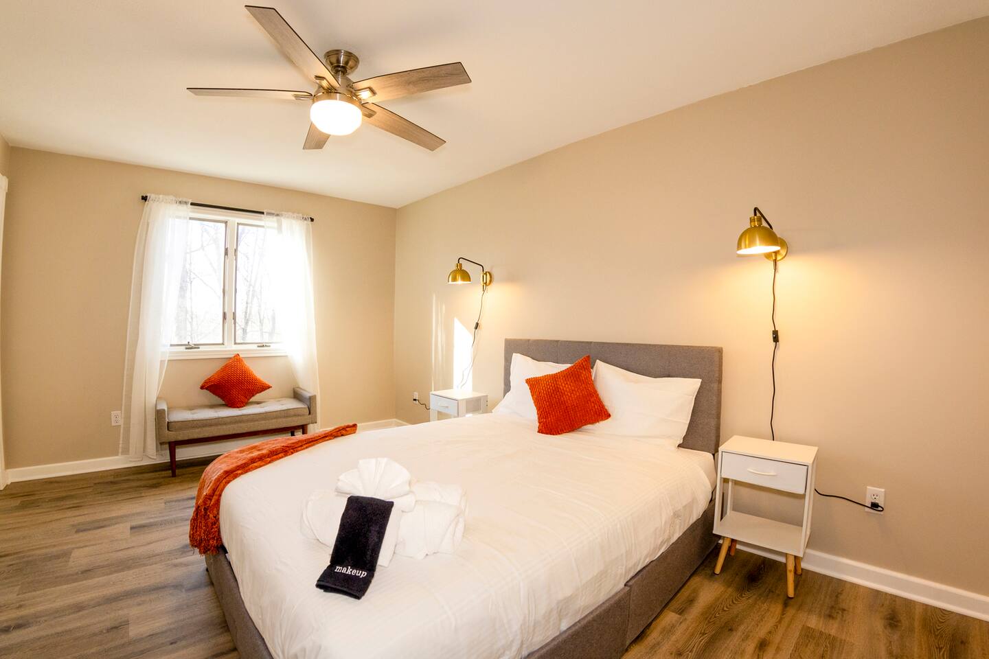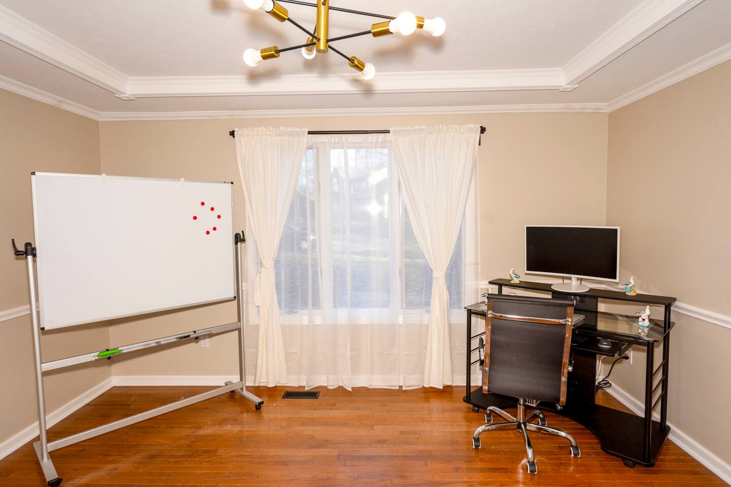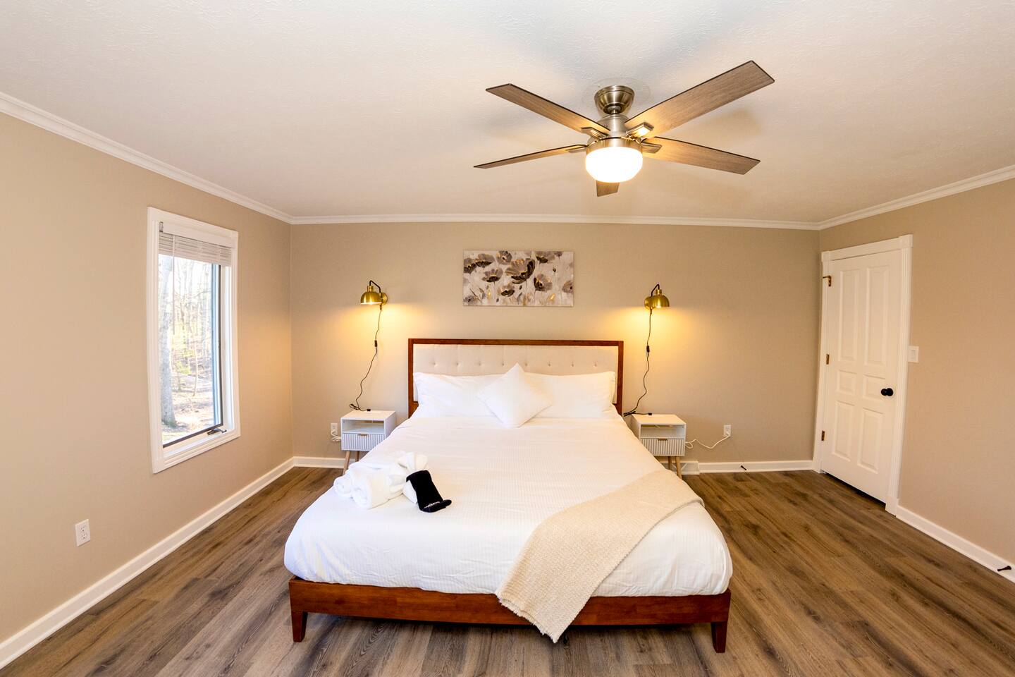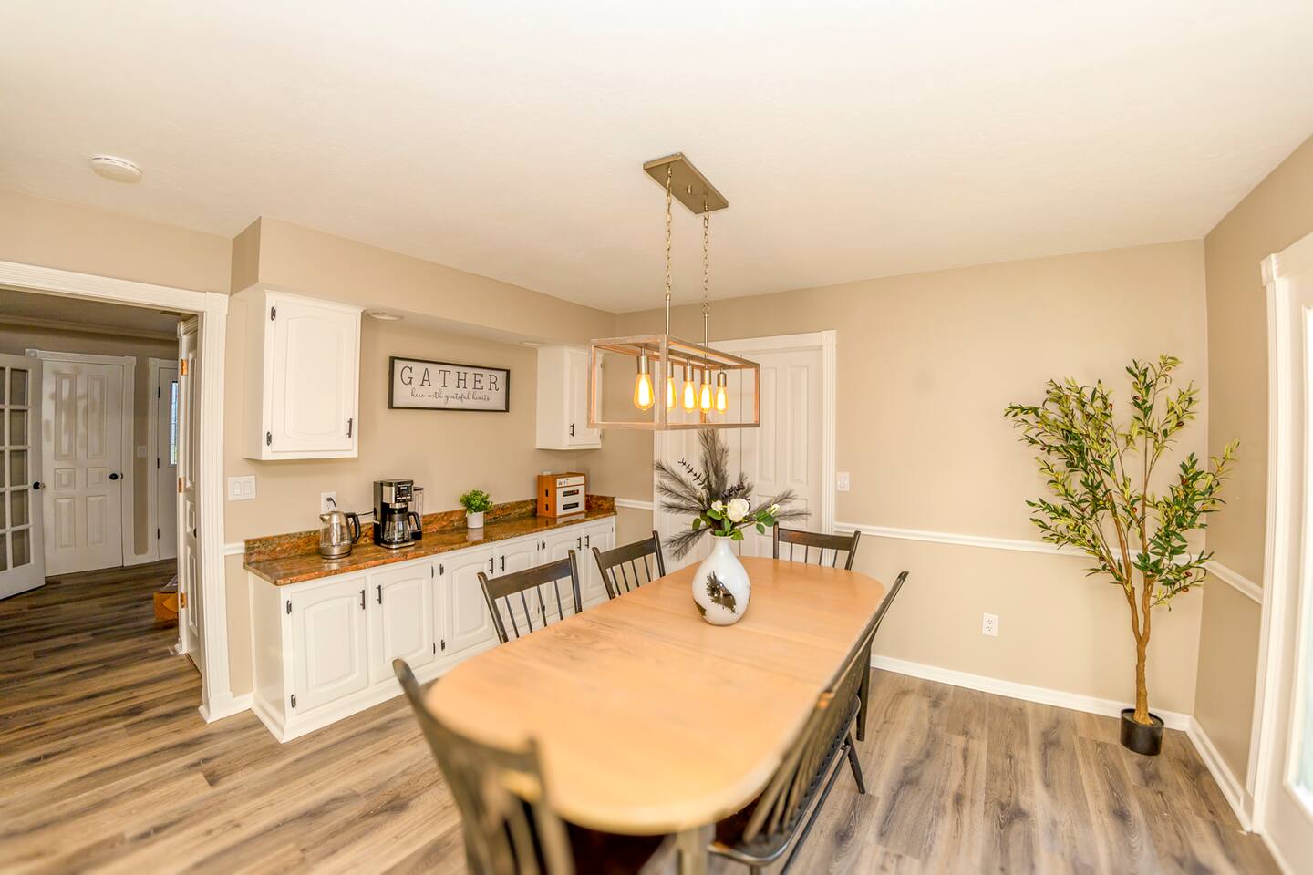 Explore the beauty of nature and rejuvenate your mind and body in our private yoga studio with large windows and a ballet barre. Gather in the spacious living areas, enjoy friendly competition in the game room, cook in the fully equipped kitchen, or unwind on the patio overlooking serene surroundings. With luxurious amenities and thoughtful design, this retreat is restorative, transformative, and unforgettable. Accommodations: - 6 Bedrooms with 7 Beds (2 King Beds, 3 Queen Beds and 2 Twin beds) - Upper Level: 5 bedrooms - Lower Level: 1 Bedroom - 3 Full Bathrooms and 2 Half Bathrooms - Upper Level: 2 Full Baths - Main Level: 1 Half Bath - Lower Level : 1 Full Bath and 1 Half Bath Additional spaces include: - A dedicated office room with a monitor, printer, and USB-C setup for laptops. - A spacious living room that opens to a patio. - A 500 sqft yoga studio with a ballet barre for yoga, meditation, or group activities. - A versatile game room Includes Ping Pong, Foosball, Basketball, Kids Lego, and more. Features: - Prime location near the 270 & 161 Highway Junction, with easy access to shopping, dining, and entertainment. - Spacious Living Room: Opens to a large patio, perfect for gathering and relaxing. - Yoga Studio: 500 sqft serene space with skylight, large windows, ridge views, and a ballet barre—ideal for yoga, meditation, or group activities. - Dedicated Office Room: Fully equipped with a monitor, printer, and USB-C port setup for your laptop, ensuring a productive and comfortable workspace. - Fully Equipped Kitchen: Stocked with all necessary utensils to prepare and enjoy meals with your group. - Game room: Includes Ping Pong, Foosball, Basketball, Kids Lego, and more for endless fun. - Parking: 2-car garage plus a large driveway with space for multiple vehicles. Outdoor Space: - Enjoy 1 acre of private space on a scenic ridge with tranquil surroundings and beautiful views. Location Highlights: - Easton Town Center: 9-minute drive for shopping, dining, and entertainment. - Blendon Woods Metro Park: 5-minute drive for nature trails and picnics. - Hoover Dam Nature Trail: 8-minute drive for hiking and exploration. - John Glenn Columbus International Airport: 13-minute drive for travel convenience. - Ohio State University: 20-minute drive for events and campus visits.