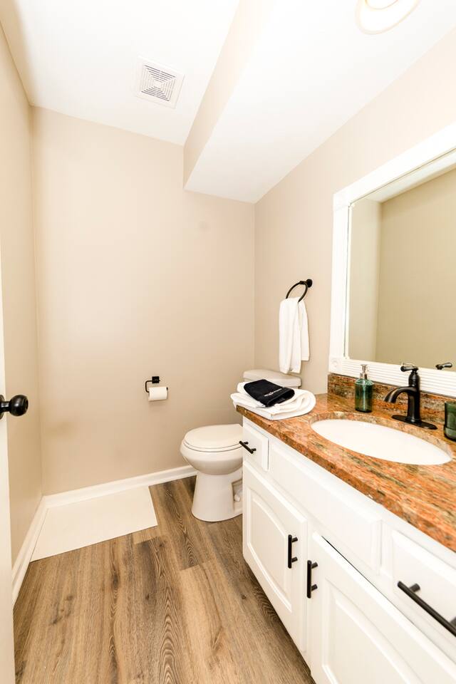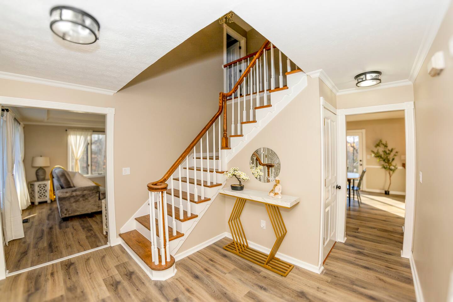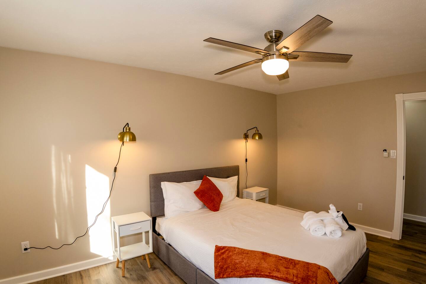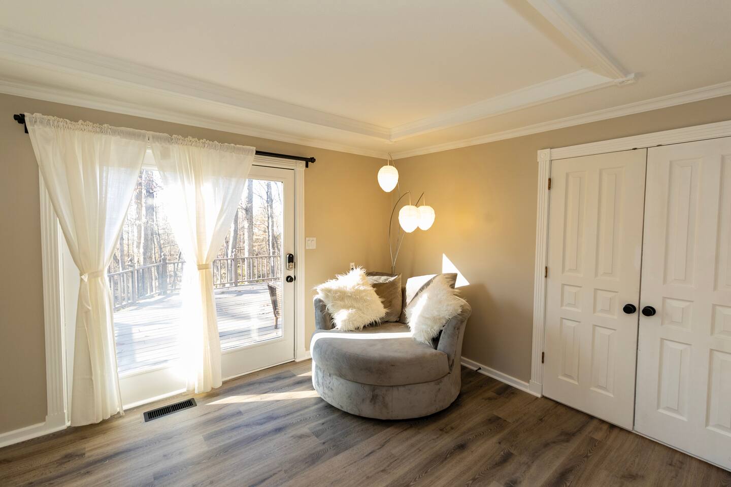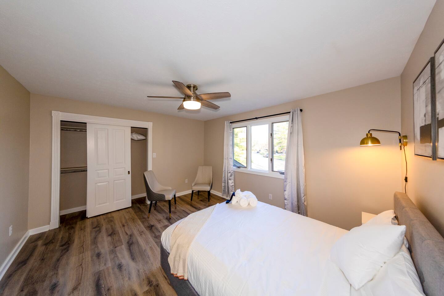 Explore the beauty of nature and rejuvenate your mind and body in our private yoga studio with large windows and a ballet barre. Gather in the spacious living areas, enjoy friendly competition in the game room, cook in the fully equipped kitchen, or unwind on the patio overlooking serene surroundings. With luxurious amenities and thoughtful design, this retreat is restorative, transformative, and unforgettable. Accommodations: - 6 Bedrooms with 7 Beds (2 King Beds, 3 Queen Beds and 2 Twin beds) - Upper Level: 5 bedrooms - Lower Level: 1 Bedroom - 3 Full Bathrooms and 2 Half Bathrooms - Upper Level: 2 Full Baths - Main Level: 1 Half Bath - Lower Level : 1 Full Bath and 1 Half Bath Additional spaces include: - A dedicated office room with a monitor, printer, and USB-C setup for laptops. - A spacious living room that opens to a patio. - A 500 sqft yoga studio with a ballet barre for yoga, meditation, or group activities. - A versatile game room Includes Ping Pong, Foosball, Basketball, Kids Lego, and more. Features: - Prime location near the 270 & 161 Highway Junction, with easy access to shopping, dining, and entertainment. - Spacious Living Room: Opens to a large patio, perfect for gathering and relaxing. - Yoga Studio: 500 sqft serene space with skylight, large windows, ridge views, and a ballet barre—ideal for yoga, meditation, or group activities. - Dedicated Office Room: Fully equipped with a monitor, printer, and USB-C port setup for your laptop, ensuring a productive and comfortable workspace. - Fully Equipped Kitchen: Stocked with all necessary utensils to prepare and enjoy meals with your group. - Game room: Includes Ping Pong, Foosball, Basketball, Kids Lego, and more for endless fun. - Parking: 2-car garage plus a large driveway with space for multiple vehicles. Outdoor Space: - Enjoy 1 acre of private space on a scenic ridge with tranquil surroundings and beautiful views. Location Highlights: - Easton Town Center: 9-minute drive for shopping, dining, and entertainment. - Blendon Woods Metro Park: 5-minute drive for nature trails and picnics. - Hoover Dam Nature Trail: 8-minute drive for hiking and exploration. - John Glenn Columbus International Airport: 13-minute drive for travel convenience. - Ohio State University: 20-minute drive for events and campus visits.