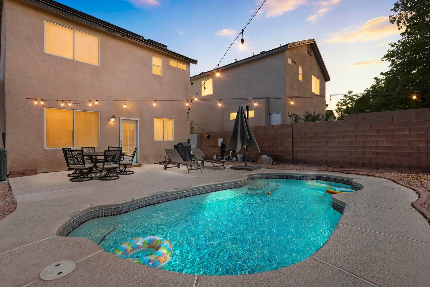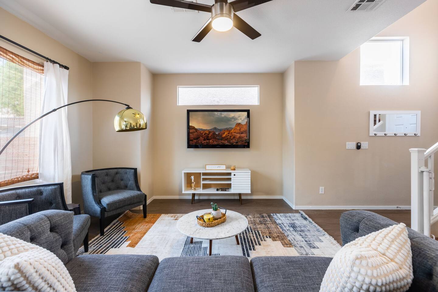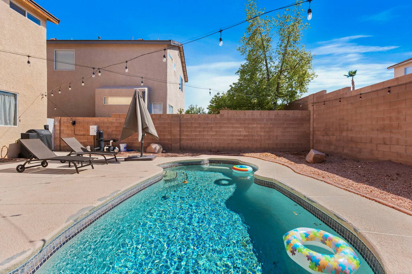 • 1600 Square Feet of living area • 3 Bedrooms, 2 1/2 Baths, office setup, Loft Area, Walk-In Closet, and Laundry Facilities • Central Heat/ Air System • small-sized private pool with a depth ranging from 3ft to 5ft. • High-speed Fiber Internet with WiFi connectivity for movies, videos, etc. • Fully equipped kitchen with all utensils necessary for cooking your meals • 2-car garage for parking convenience • Located near the 215 Highway exit • Close proximity to 24-hour restaurants, shops, and entertainment options • Only a 15-minute drive to the Las Vegas Strip • Convenient access to Red Rock Canyon • Within walking distance to Wet'n'Wild Amusement Park • Nearby biking and hiking trails • Shops, Convenience Stores, and Restaurants in the vicinity • Plus much more.