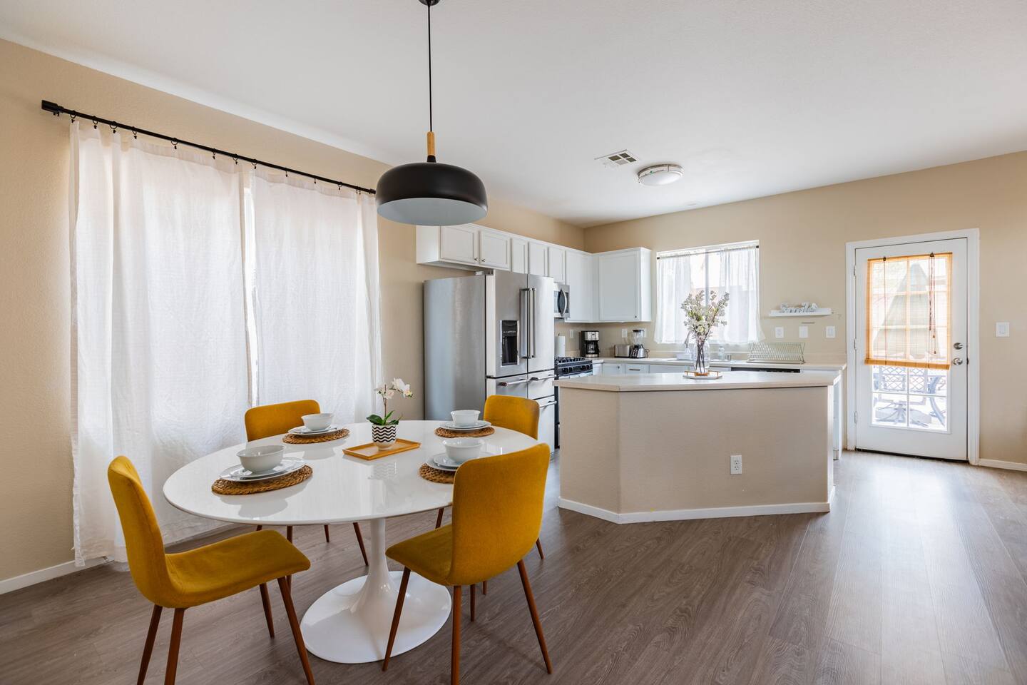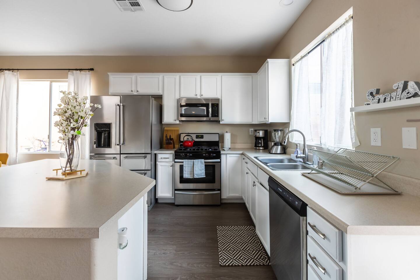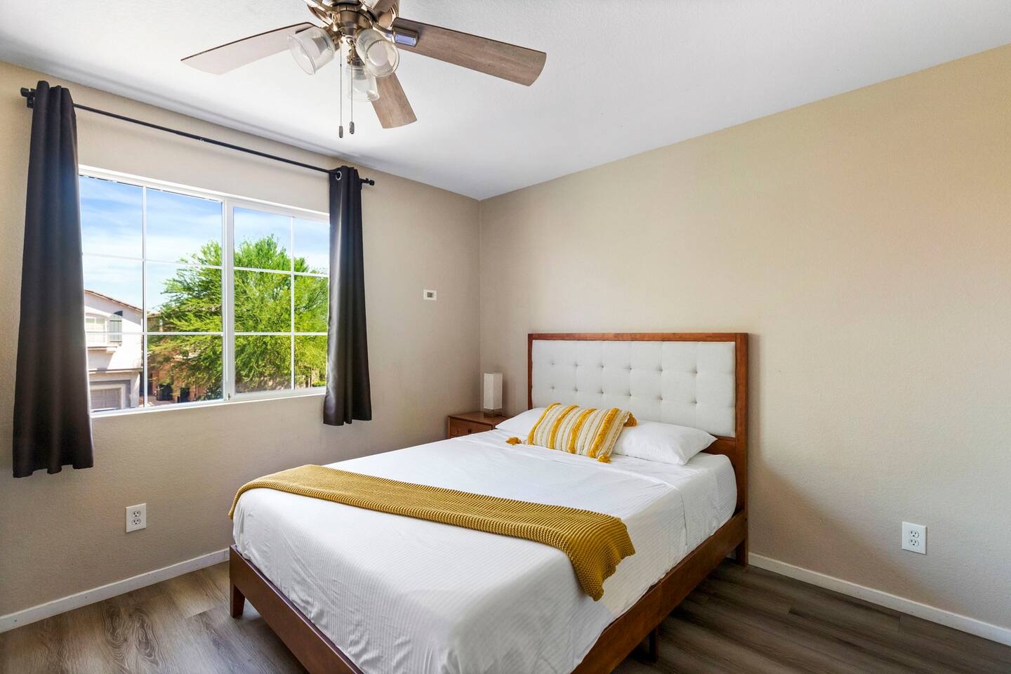 • 1600 Square Feet of living area • 3 Bedrooms, 2 1/2 Baths, office setup, Loft Area, Walk-In Closet, and Laundry Facilities • Central Heat/ Air System • small-sized private pool with a depth ranging from 3ft to 5ft. • High-speed Fiber Internet with WiFi connectivity for movies, videos, etc. • Fully equipped kitchen with all utensils necessary for cooking your meals • 2-car garage for parking convenience • Located near the 215 Highway exit • Close proximity to 24-hour restaurants, shops, and entertainment options • Only a 15-minute drive to the Las Vegas Strip • Convenient access to Red Rock Canyon • Within walking distance to Wet'n'Wild Amusement Park • Nearby biking and hiking trails • Shops, Convenience Stores, and Restaurants in the vicinity • Plus much more.